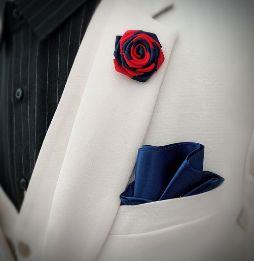當然,小小的口袋巾也可以成為整套西服的點睛之筆,除了在顏色上要選擇與領帶色系一致外,還可以選擇一些有趣的圖案,或者和新娘身上禮服形成呼應的顏色!